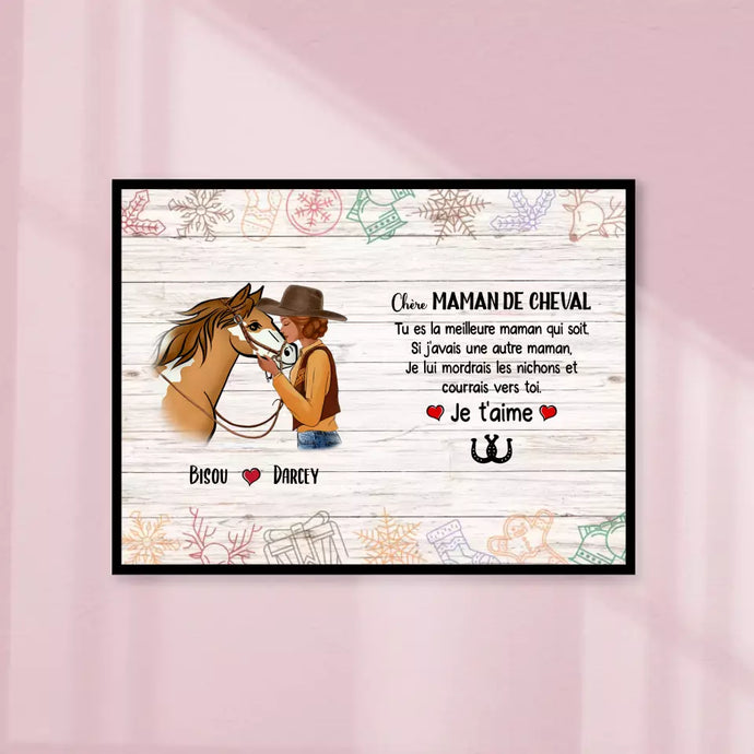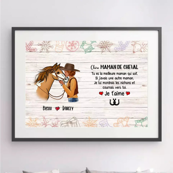 Poster encadré en bois personnalisée, cadeau pour maman cheval, fête des mères, Chére Maman De Cheval Je T'aime