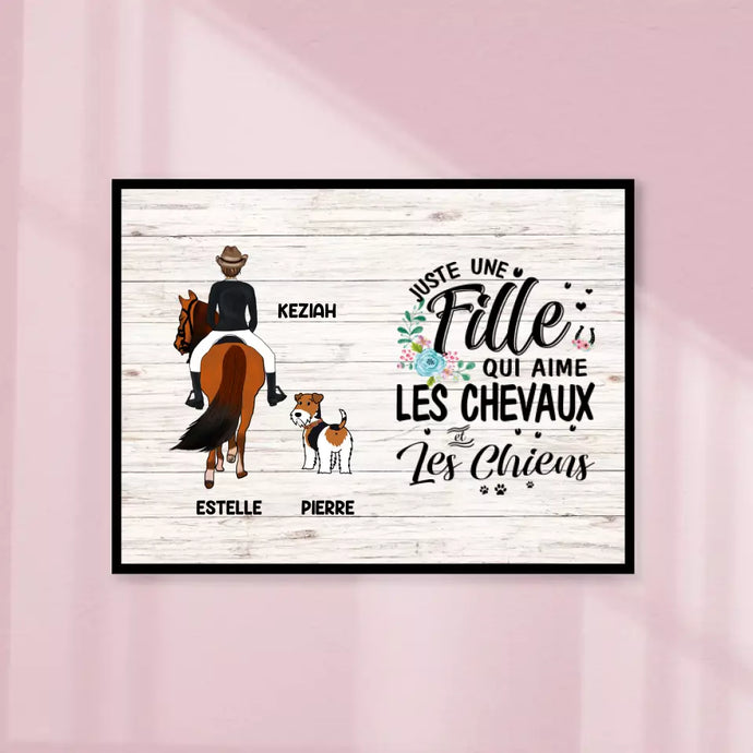 Poster encadré en bois personnalisée, cadeau pour maman cheval et chien, Femme, Fille Qui Aime Chevalx Les Chiens