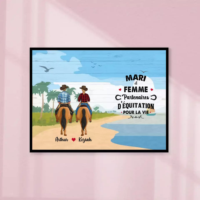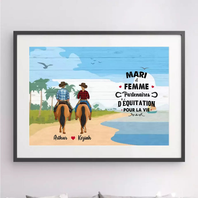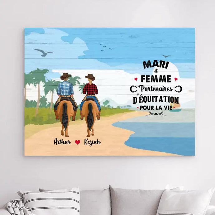 Toile à suspendre personnalisée, Toile cadeau pour maman cheval, Mari et Femme Patenaires D'équitation Pour La Vie