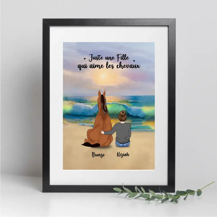 Jusqu'à 2 chevaux, Passe partout personnalisés, Cadeau Pour Maman cheval, fille avec cheval sur la plage