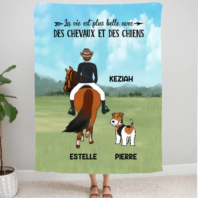 Couverture personnalisés, Plaid en polaire cadeau Pour Maman Cheval, fête des mères, mieux avec chevaux et chiens