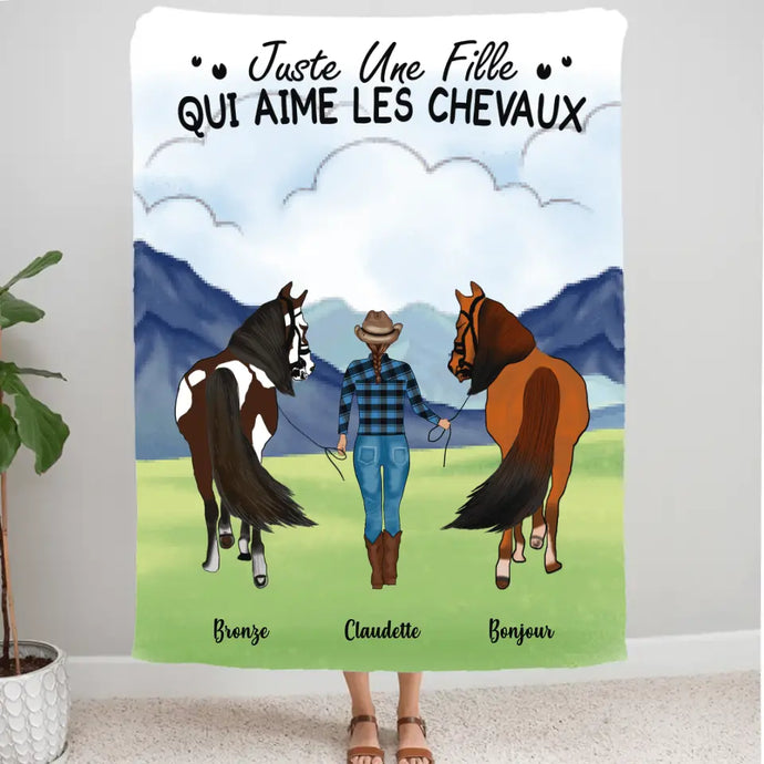 Couverture personnalisés, Plaid en polaire cadeau Pour Maman cheval, Juste Une Fille Qui Aime Les Chevaux