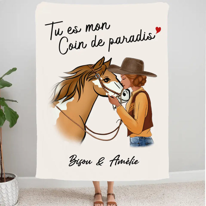 Couverture personnalisés, Plaid en polaire cadeau Pour Maman cheval, fête des mères, Tu es mon Coin de paradis