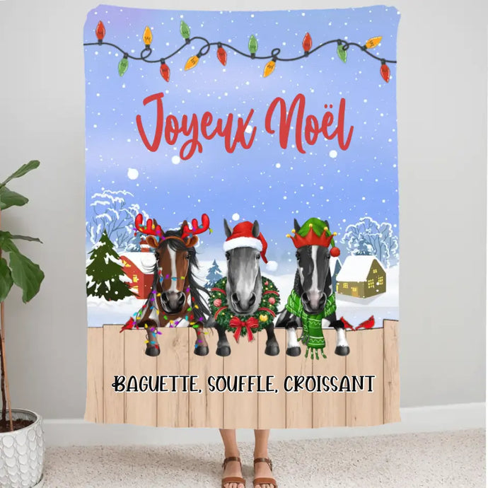 Couverture personnalisés, Plaid en polaire cadeau Pour Maman Cheval, Jusqu'à 3 chevaux, Joyeux Noël