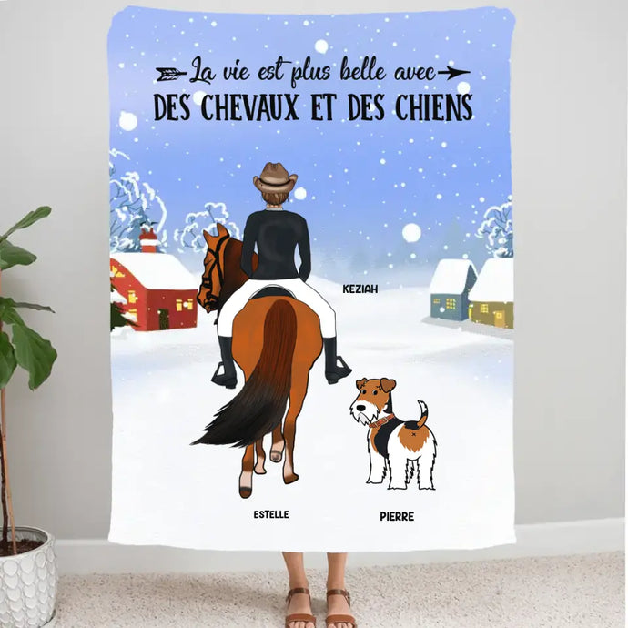 Couverture personnalisés, Plaid en polaire cadeau Pour Maman Cheval, Joyeux Noël, Fille aime chevaux et chiens