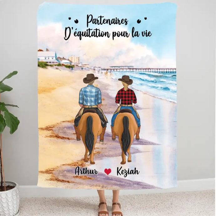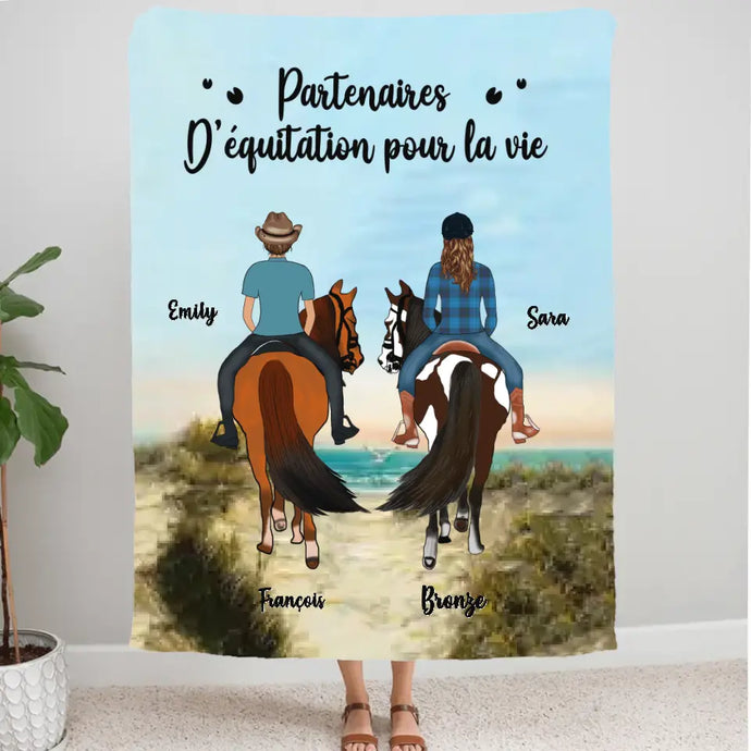 Couverture personnalisés, Plaid en polaire Pour Maman cheval, Jusqu'à 3 chevaux, Partenaires d'équitation pour la vie