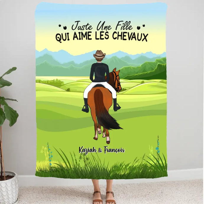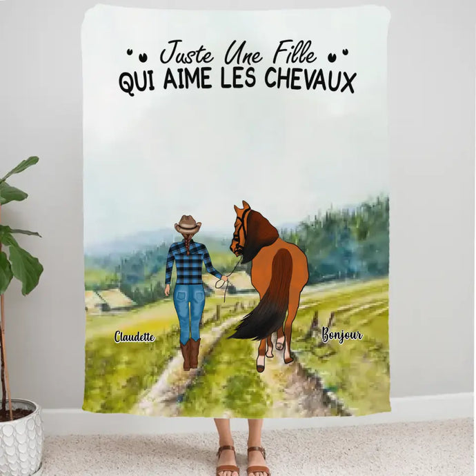 Couverture personnalisés, Plaid en polaire Pour Maman cheval, Jusqu'à 3 chevaux, Fille Qui Aime Les Chevaux