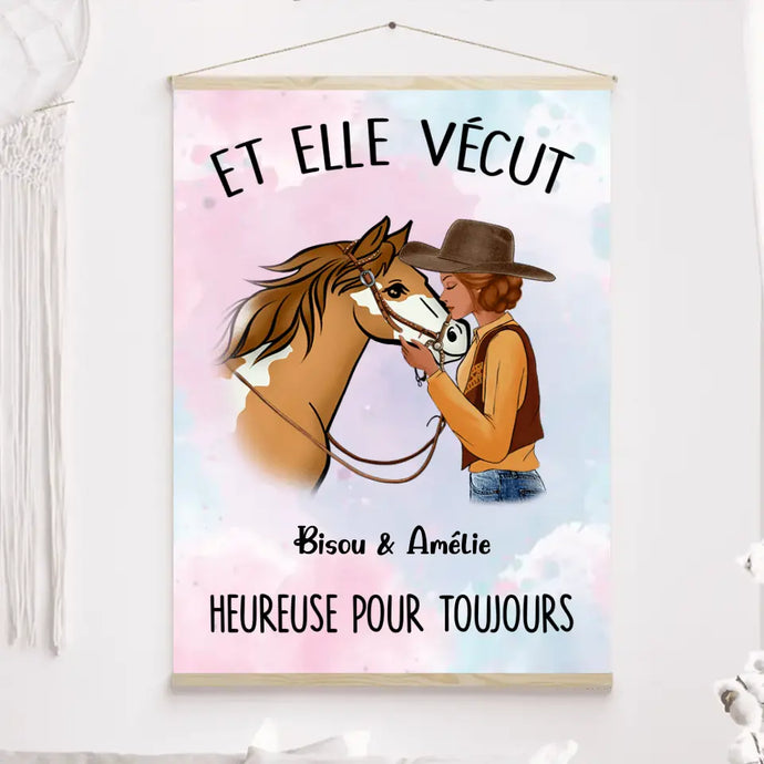 Toile à suspendre personnalisés, Toile Pour Maman cheval, fête des mères, et elle a vécu heureuse pour toujours