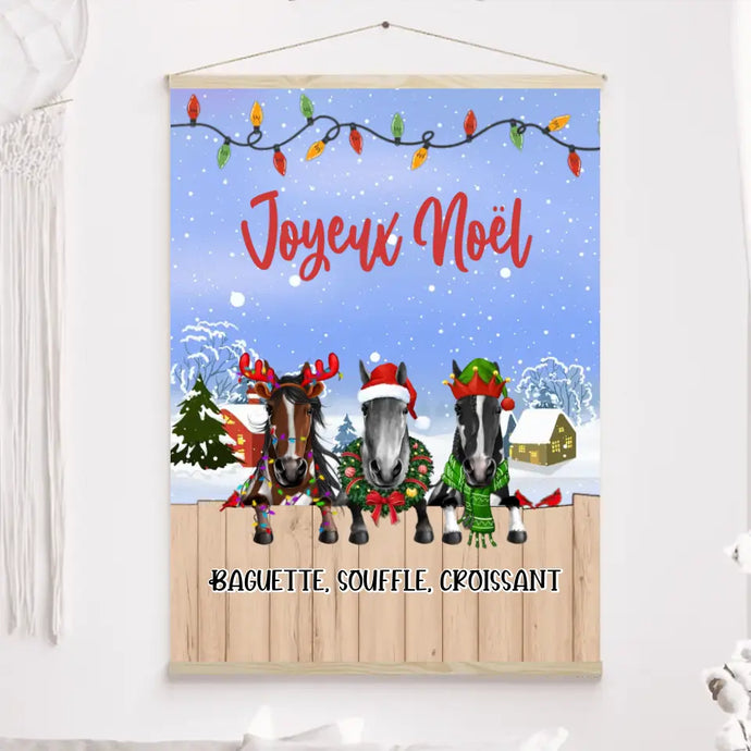 Jusqu'à 3 chevaux, Toile à suspendre personnalisés, Toile cadeau Pour Maman Cheval, Joyeux Noël