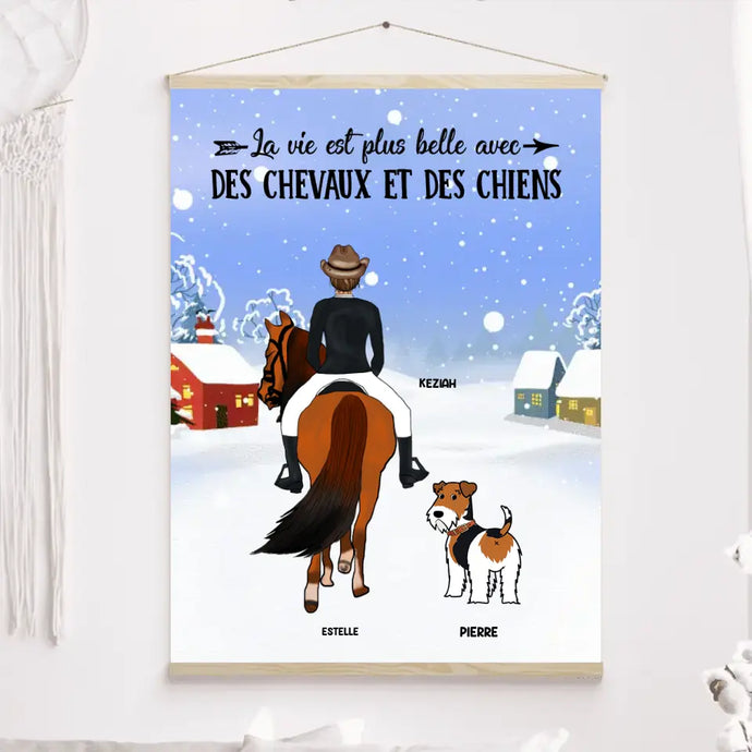 Toile à suspendre personnalisés, Toile cadeau Pour Maman Cheval, Joyeux Noël, Fille aime les chevaux et les chiens