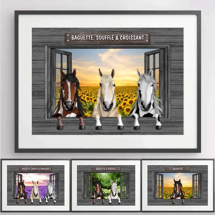 Jusqu'à 3 chevaux, Passe-partout personnalisée, Poster encadré cadeau, cadeau pour les amoureux des chevaux