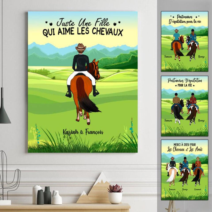 Jusqu'à 3 chevaux, Toile personnalisée, Cadeau pour les amoureux des chevaux, La vie est meilleure avec les chevaux