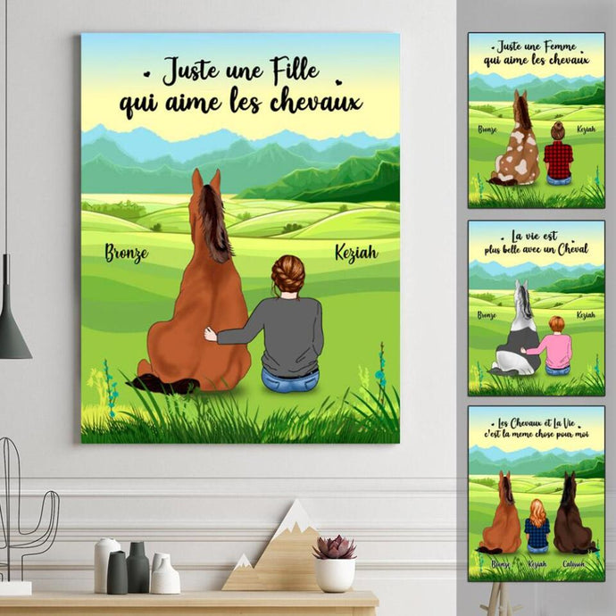 Jusqu'à 2 chevaux, Toile personnalisée, Cadeau pour les amoureux des chevaux, Juste une fille qui aime les chevaux