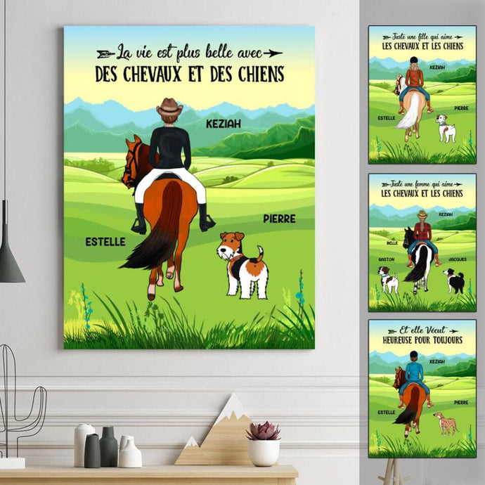 Jusqu'à 2 chiens, Toile personnalisée, Cadeau pour les amoureux des chevaux et des chiens