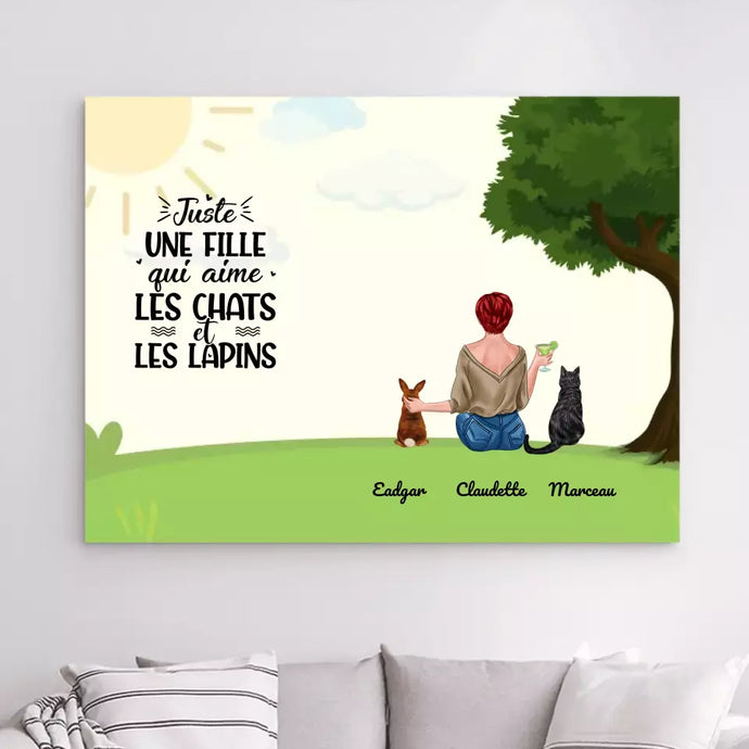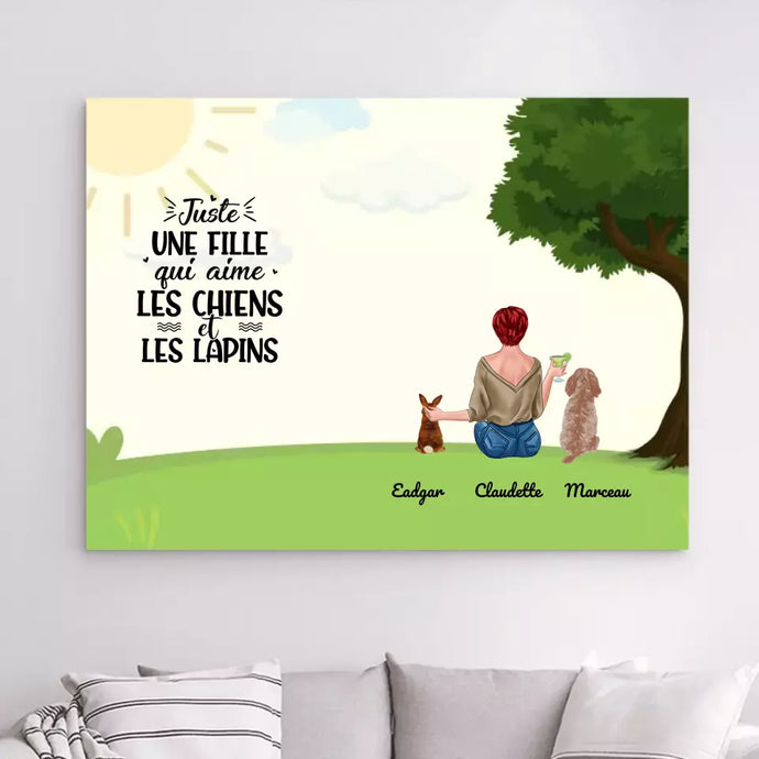 Toile à suspendre personnalisée, Toile cadeau pour Maman lapin, Maman Chien, Femme, Fille Qui Aime Lapins, Chiens
