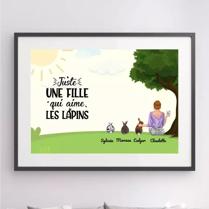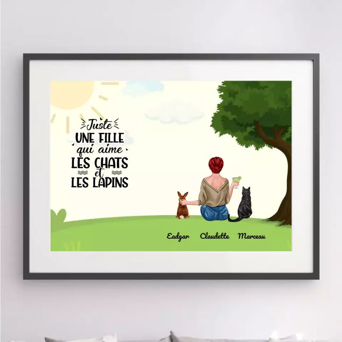 Poster encadré en bois personnalisée, cadeau pour Maman lapin, Maman Chat, Femme, Fille Qui Aime Lapins les Chats