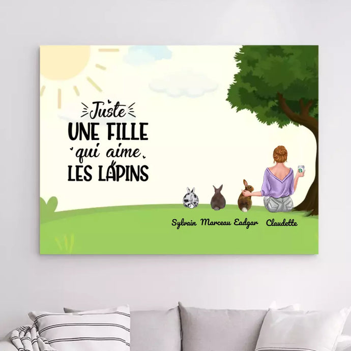 Toile à suspendre personnalisée, Toile cadeau pour Maman lapin, Maman Chat, Femme, Fille Qui Aime Lapins les Chats