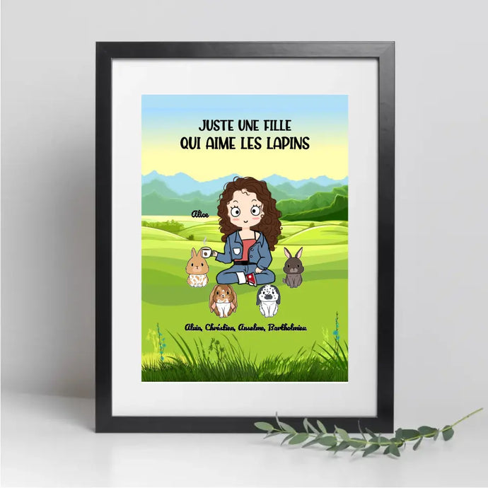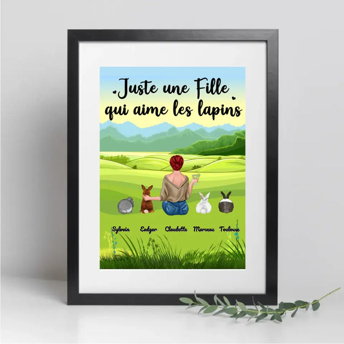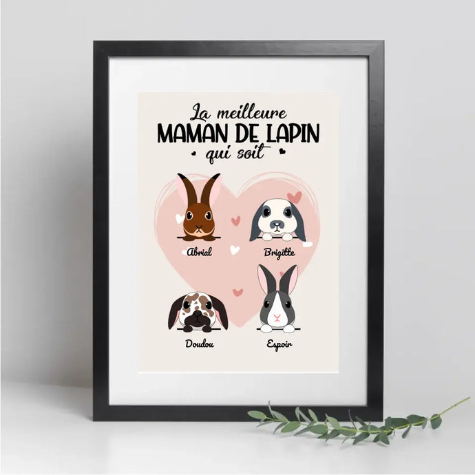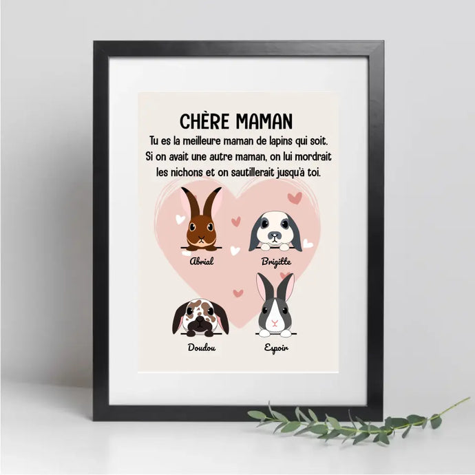 Poster encadré en bois personnalisée, cadeau pour Maman lapin, jusqu'à 9 lapins, Femme, Fille Qui Aime Lapins