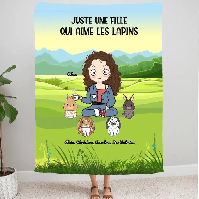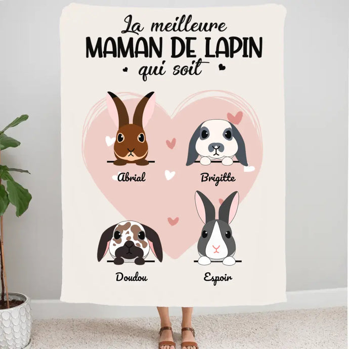 Couverture personnalisés, Plaid en polaire Cadeau Pour Maman De lapin, Jusqu'à 4 lapins, fête des mères, aime les lapins