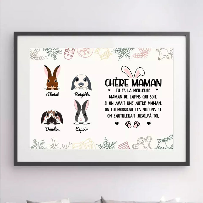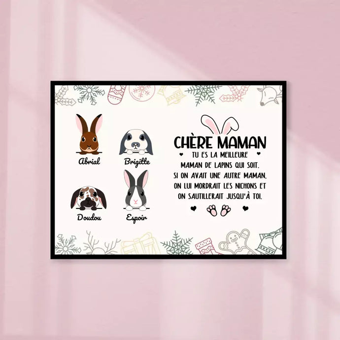 Poster encadré en bois personnalisée, cadeau pour Maman lapin, fête des mères, Jusqu'à 9 lapins, Chére Maman