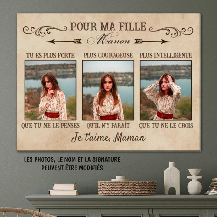 Cadeau personnalisé de toile de photo pour la fille de maman, Art de mur de toile de fille, Pour ma fille courageuse