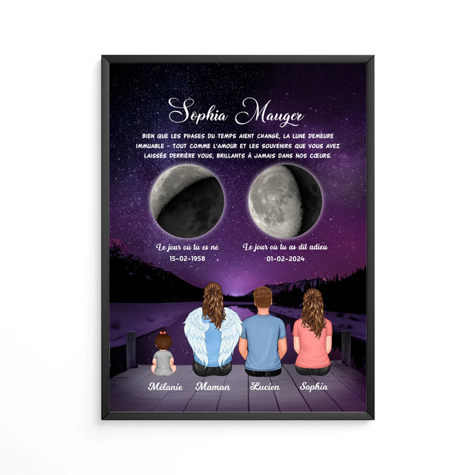 Phase de Lune Art Mémorial Sympathie Cadeau Personnalisé Poster, commémorer le décès d'un Mère, Maman, grand-mère
