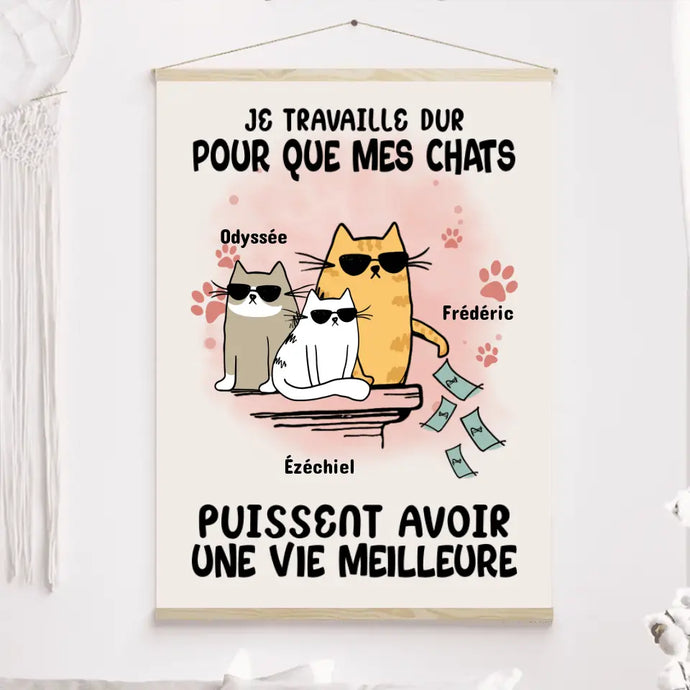 Jusqu'à 3 Chats, Toile à suspendre personnalisée, Toile cadeau pour Maman Chat, fête des mères, une vie meilleure