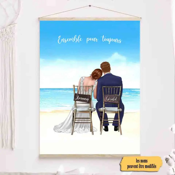 Couple de mariage sur la plage toile personnalisée, Toile à suspendre cadeau pour couple, anniversaire de mariage