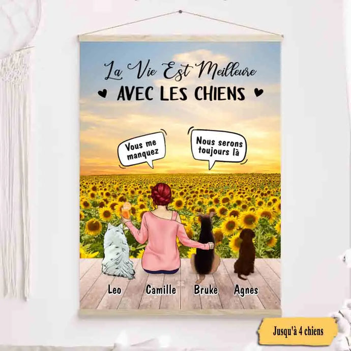 Jusqu'à 4 chiens, Toile à suspendre personnalisée, Toile Cadeau pour Maman de chiens, je serai toujours là