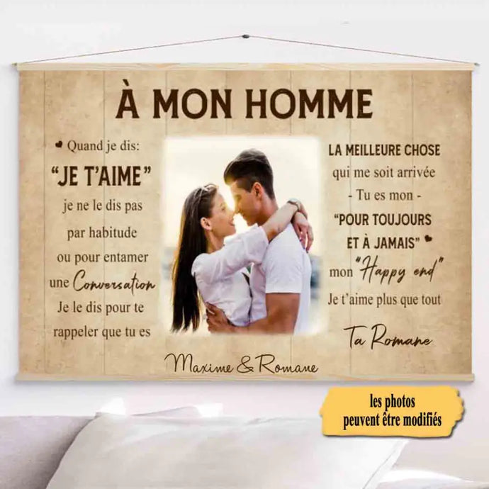 Toile à suspendre Photo Personnalisée, Toile Cadeau pour couple, A mon homme/A ma femme, quand je dis je t'aime