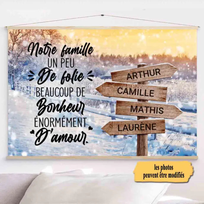 Toile à suspendre personnalisée, Toile Noël Cadeau, Notre famille un peu de folie beaucoup de bonheur