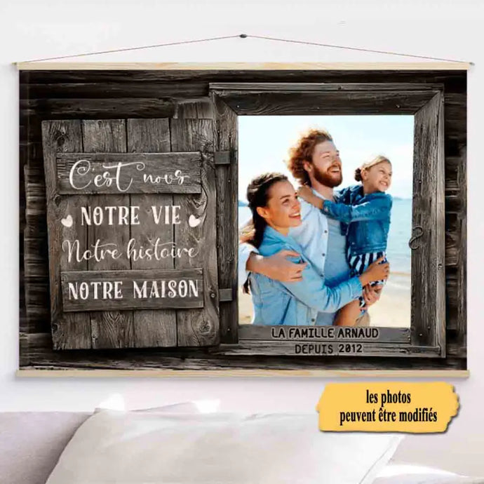 Toile à suspendre Photo personnalisée, Toile Cadeau Pour famille, c'est nous notre vie notre histoire notre maison