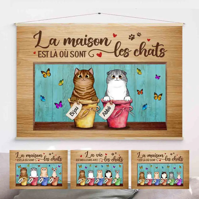 Jusqu'à 6 chats, Toile à suspendre Personnalisée, toile pour amoureux chat, La maison est là où sont les chats