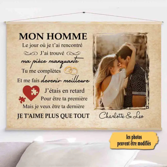 Toile à suspendre Personnalisée, toile, couple femme, mari, petite amie, petit ami, cadeau pour ma pièce manquante