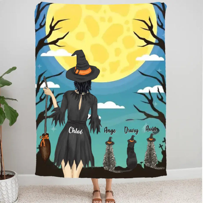 Couverture personnalisée, Plaid en polaire cadeau pour Maman Chat, Jusqu'à 3 Chats, joyeux Halloween