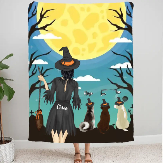 Couverture personnalisée, Plaid en polaire Cadeau pour Maman Chien, Jusqu'à 3 Chiens, joyeux Halloween