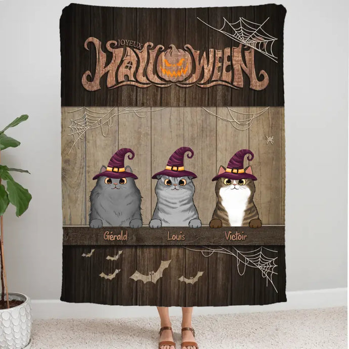 Couverture Personnalisée, Plaid en polaire Cadeaux pour les amoureux des chats, Jusqu'à 8 chats, Joyeux Halloween