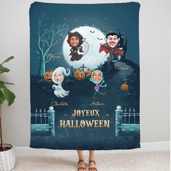 Couverture photo personnalisés, Plaid en polaire Halloween Cadeau pour Famille, papa, maman, enfants