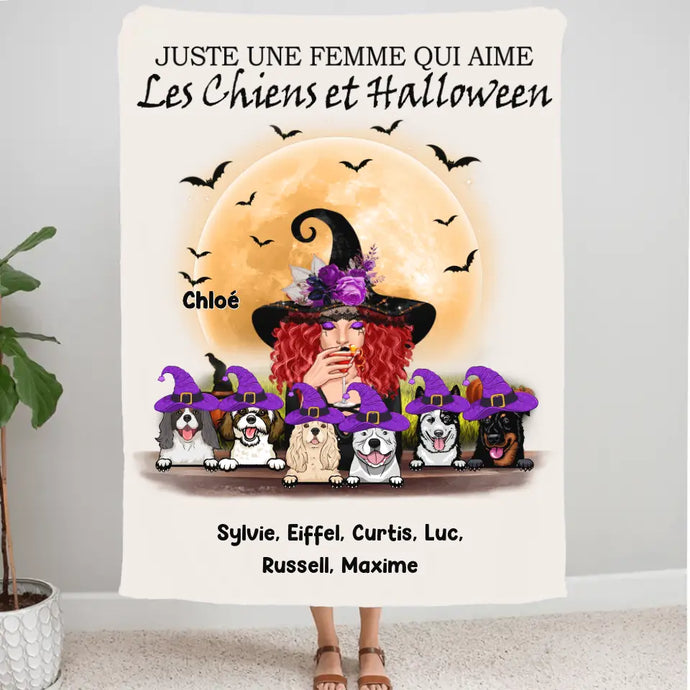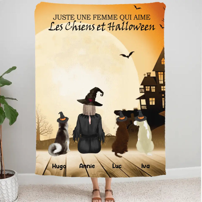 Couverture personnalisée, Plaid en polaire Cadeau pour Maman Chien, sorcière, Jusqu'à 6 Chiens, Joyeux Halloween