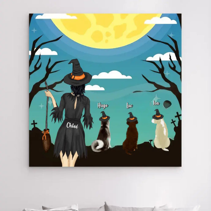 Jusqu'à 3 Chiens, Toile à suspendre personnalisée, Toile cadeau pour Maman Chien, joyeux Halloween