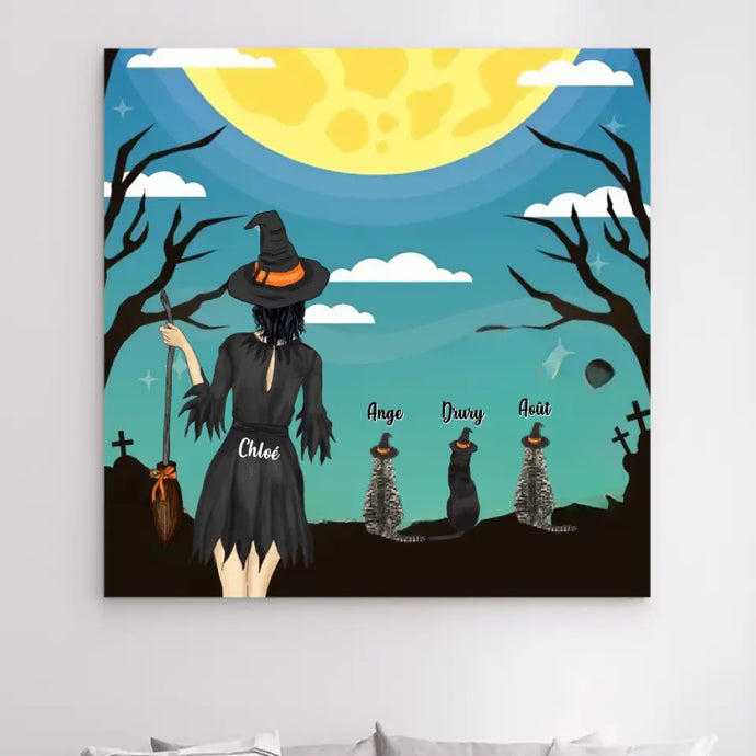 Jusqu'à 3 Chats, Toile à suspendre personnalisée, Toile cadeau pour Maman Chat, joyeux Halloween