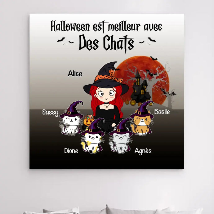 Jusqu'à 9 Chats, Toile à suspendre personnalisée, Toile cadeau pour Maman Chat, grand-mère, Halloween des chats