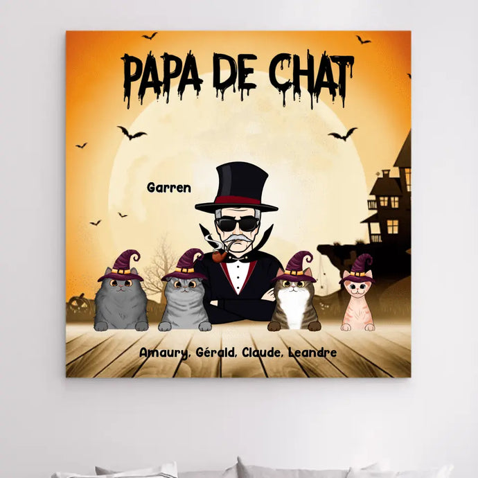 Impressions sur métal personnalisée, cadeau pour Papa Chat, papy, grand-père, Jusqu'à 6 Chats, Joyeux Halloween