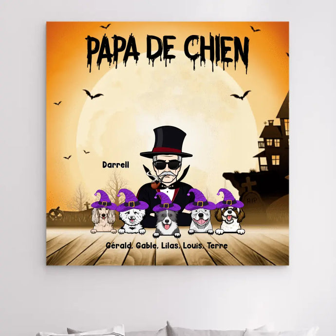 Jusqu'à 6 Chiens, Toile à suspendre personnalisée, Toile cadeau pour Papa Chien, papy, grand-père, Joyeux Halloween