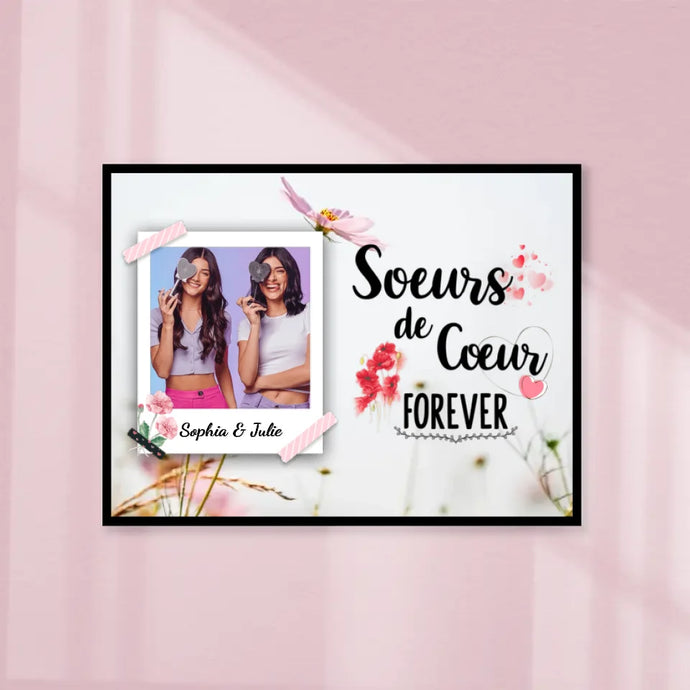 Poster encadré en bois personnalisée, cadeau pour amies, sœurs, jusqu'à 4 photos, sœurs de cœur forever