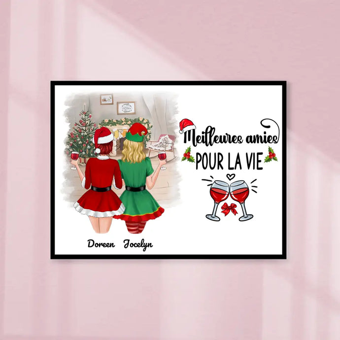 Poster encadré en bois personnalisée, Noël cadeau pour amies, Sœurs, Jusqu'à 5 filles, Meilleures Amies Pour La Vie