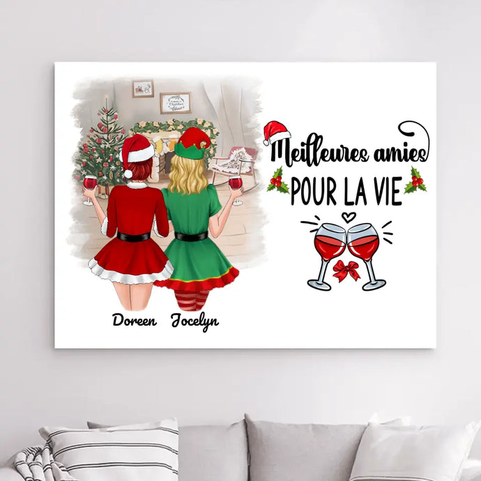 Toile à suspendre personnalisée,Toile Noël cadeau pour amies, Sœurs, Jusqu'à 5 filles, Meilleures Amies Pour La Vie