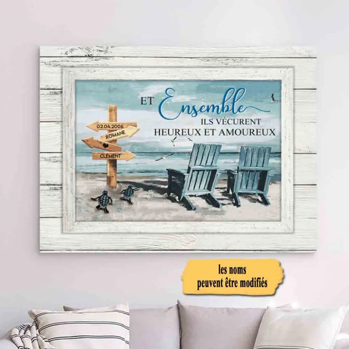 Impressions sur métal personnalisée, décoration pour couple, Et ensemble ils vécurent heureux et amoureux