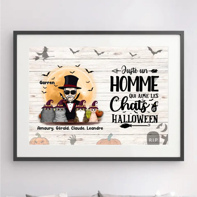 Passe partout personnalisée, Halloween cadeau pour Papa Chat, jusqu'à 5 chats, Homme Aime Chats et Halloween