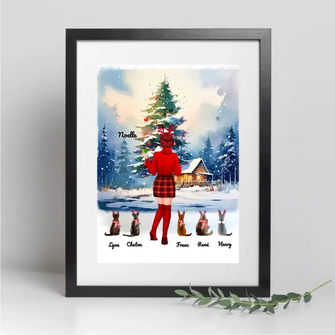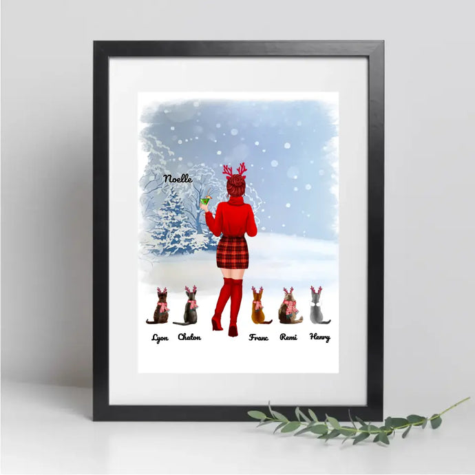 Jusqu'à 5 Chats, Passe partout personnalisée, cadeau pour Maman Chat, neige, joyeux Noël